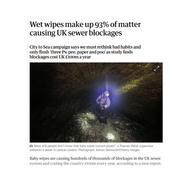 A UK study found wet wipes are the main cause of sewer blockages.
